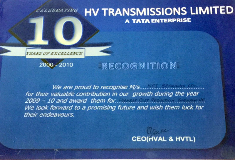 - " Supplier of excellence " award from HVTL / Tata Motors Ltd